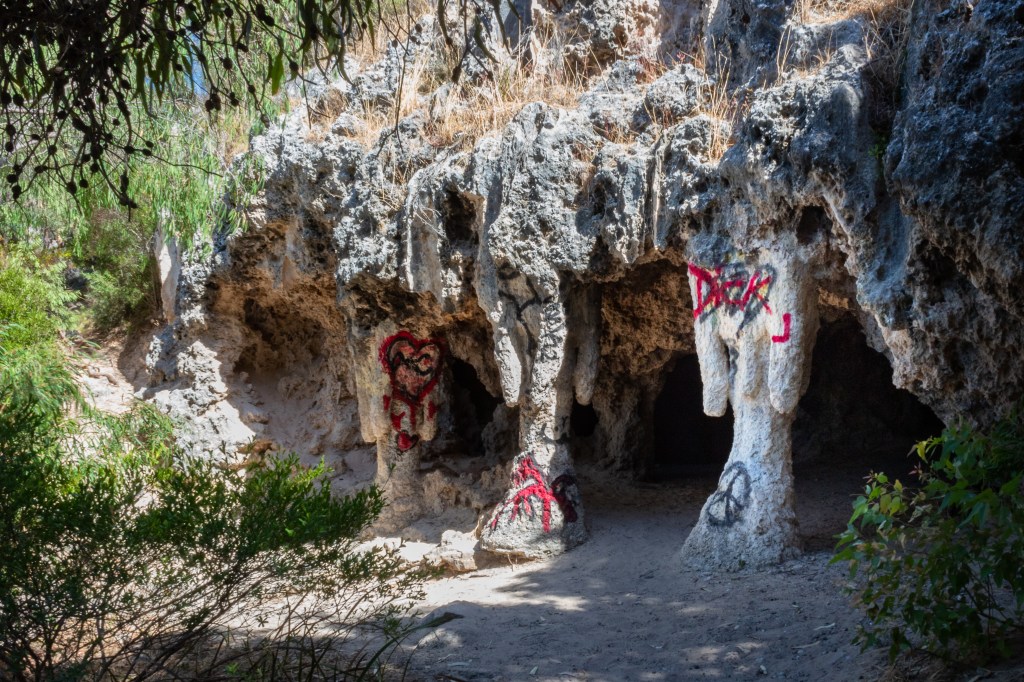 On my days off, I like to go exploring, be it of the natural or urban variety; Waugal Cave is somewhere between the two. It was once a place of cultural significance to the indigenous Noongar tribe of Perth, but now it is trashed. It was used by Europeans for lime burning, the toxic process of making quicklime/calcium oxide. These days, the homeless have been using it as a shelter, and kids have used it as a canvas for graffiti. There has been no effort made to protect or preserve this site, so my attempt with these photos is to at least capture the cave in a moment in time for the world to see. Take only photos and leave only footprints. Maybe I can generate some interest in getting the council to take better care of this place.