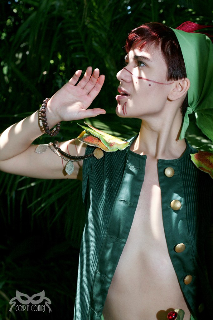 Barrie is intentionally vague about Peter’s appearance, a beautiful young boy still with his first teeth and “clad in skeleton leaves and the juices that flow from trees”. So I wanted his environment to influence his costume, not just nature but from what he had scavenged from the pirates and the natives.