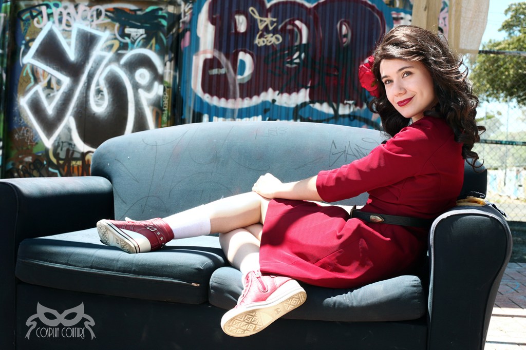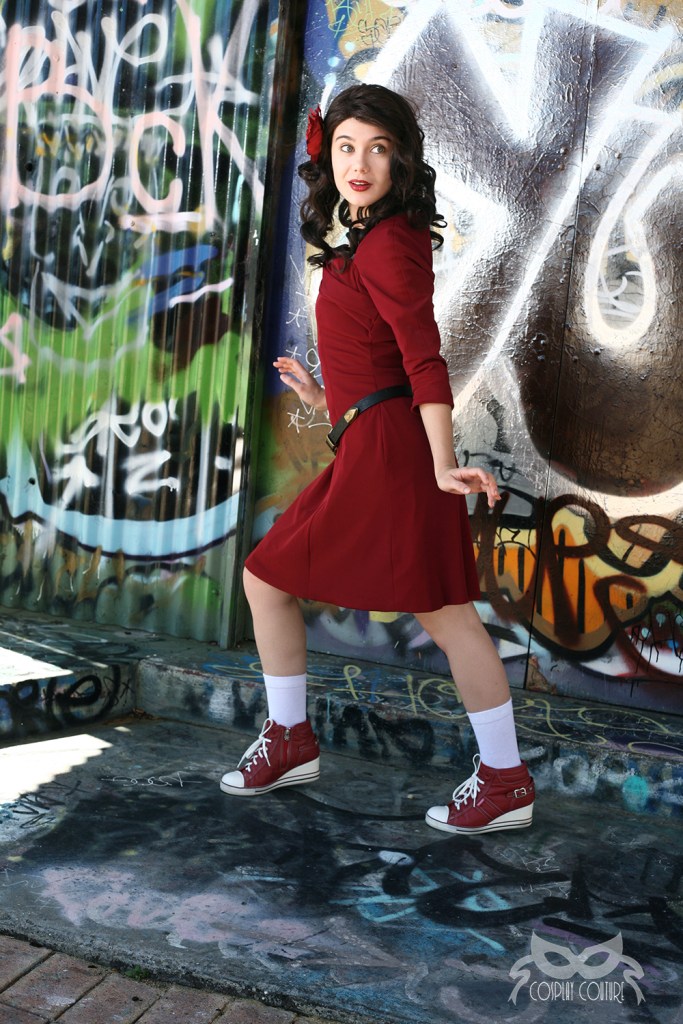 This shoot was largely improvised and presented a particular challenge for me. I don’t feel like the official Doctor Who publicity photos ever really show costumes in their entirety and they aren’t especially dynamic for the most part. There are plenty of head and shoulders shots of Clara, but nothing that really had me especially inspired. I don’t think that – at this stage in our development anyway – we’re not particularly interested in trying to replicate sets or scenes from the show. I feel that once you start doing that you are back in the realm of cosplay, so instead we were looking for actual nearby locations that perhaps were reminiscent of ideas from the show. I especially liked the plastic playground dome, which gives you a sense of her predicament in her episode, but it using a found environment. And, as always, graffiti walls are a bit of a cliche, but we stumbled upon this dilapidated skate park that was set to be demolished, and I felt that the colours really complimented such a vibrant character. You’ll notice that we shot very hot though – there wasn’t a lot of cover where we were and I was constantly battling a very bright sun. Summer in Perth is horrible for what we are doing!