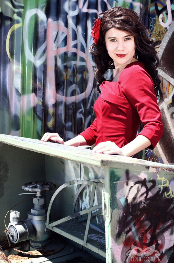 The wig was one I bought ages ago from Five Wits and it’s seriously awesome. It was originally a bit longer and a light brown, I was able to dye it and cut it without destroying it, which can happen with cheaper wigs. Styling it was a lot of fun although a bit challenging because Sturges has such a specific haircut. The make-up is all reds, burgundys and greys which I think somehow still look beautiful while giving one an unnatural look.