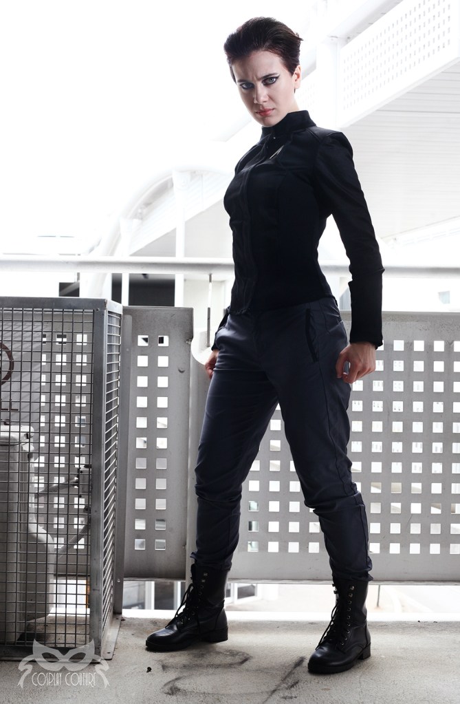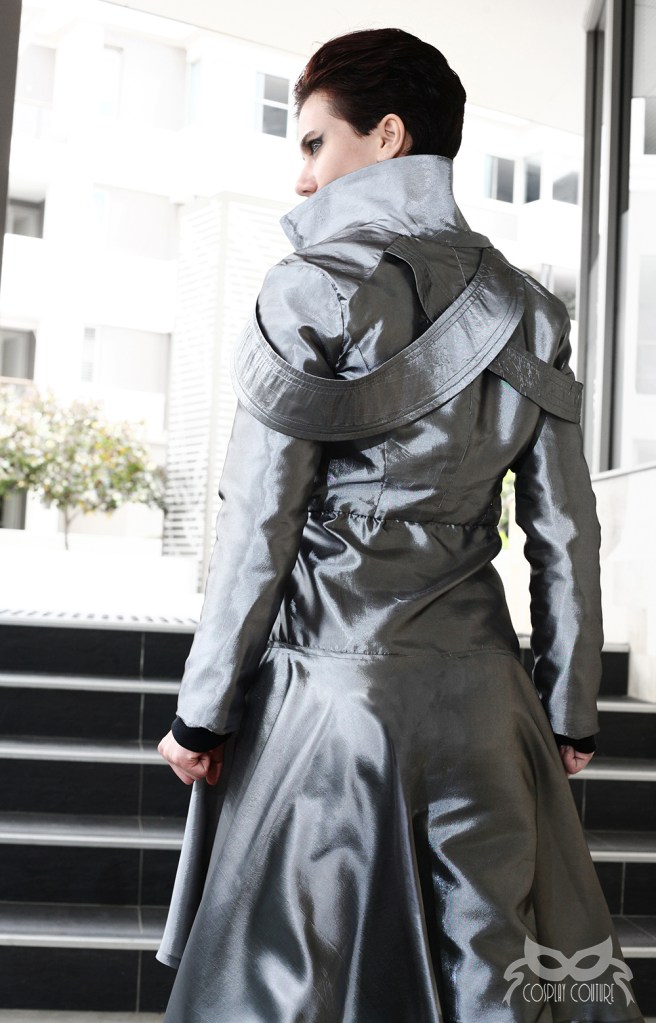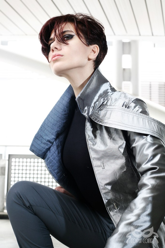Courtney is by far a bigger fan than I am of this particular character, and to be honest it wasn’t something I was overly excited about when we first started discussing this one. However, seeing the amazing designs for the jacket quickly changed my mind. I love the sleekness and audaciousness of futuristic clothing – it’s hard thing to get right, but I think Courtney managed to find that balance. I knew straight away that the silver jacket was going to be the star of the shoot and she ended up making the very impressive black under jacket as well.