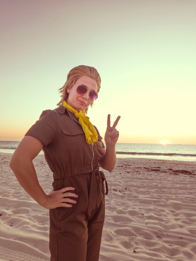 Carpe diem: I’ve wanted to do a Peace Walker Kazuhira shoot for years now, but I could never find a photographer to do it. The old community of amateur photographers has all dissipated. I decided to not let that stop me, you want a job done right, do it yourself. This shoot was struck with a case of Murphy’s Law however, anything that could go wrong, did go wrong, but I charged ahead anyway. I accidentally packed my wig tape and cap in my storage unit. I forgot to put on my holster belt. The stand for my phone broke, my DSLR just would not focus on me. But the weather was nice, there was hardly anyone on the beach on a Monday afternoon, so despite it taking longer and being more challenging than expected, it all came together in the end.